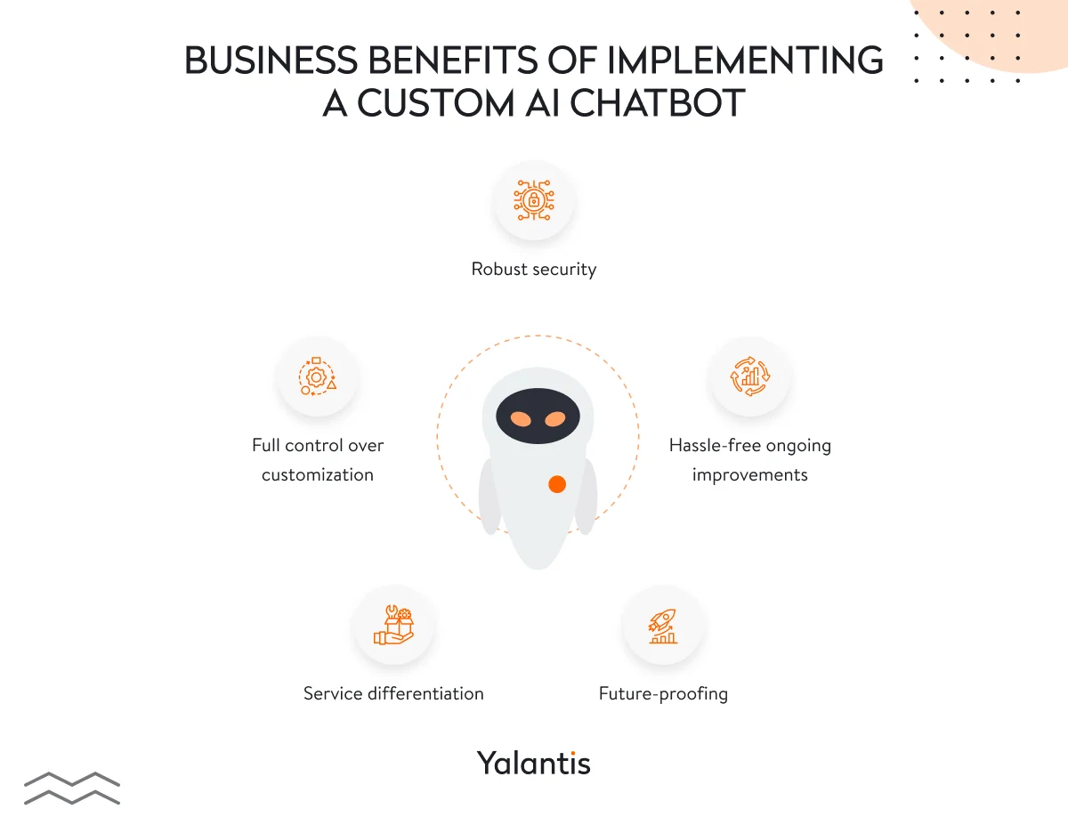 While you can easily integrate with a third-party AI vendor, this process may involve additional complications, like increased effort and operational delays. However, you can avoid those if you go for a custom chatbot solution.