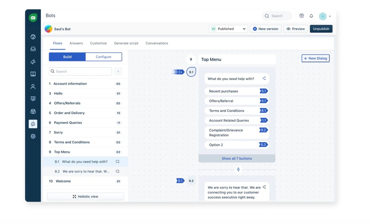 - Full control over customization. Banks can fully customize the chatbot’s capabilities, conversations flows, integrations, and features to meet their specific business needs.