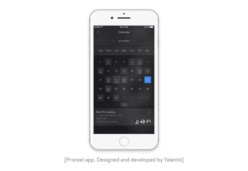 While developing the Proreel application — an event scheduling platform for actors and shoot managers — we needed to implement a calendar that would be accessible by users from messaging, the projects list, and event details. The calendar also had to allow users to see their previous and upcoming events and adjust their schedules accordingly.