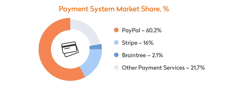 PayPal is the most popular payment service in the world, with a 60.2 percent global market share according to Datanyze. PayPal’s two closest competitors are far behind: Stripe’s global market share is 16 percent and Braintree’s is 2.1 percent.