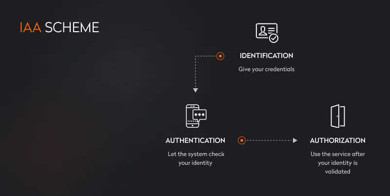 Identification is the process of identifying a user in the system, usually by a username or email. When registering, a user provides this identifier and a password to create a unique user account in the system to which their data will be linked. Then users authenticate in the application with these identifiers and passwords.