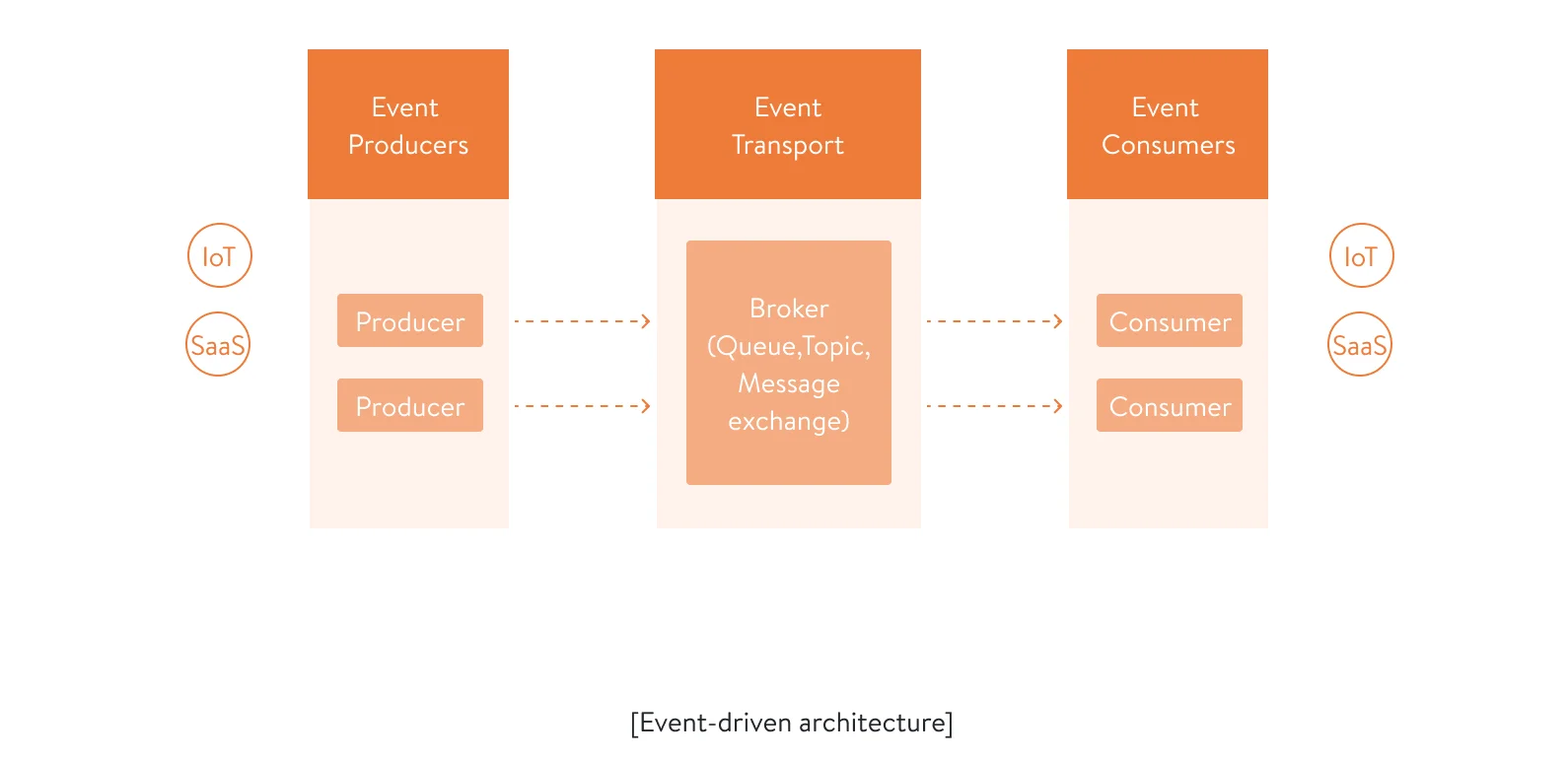- The existence of event transport eliminates the need for direct communication and dependencies between producers and consumers