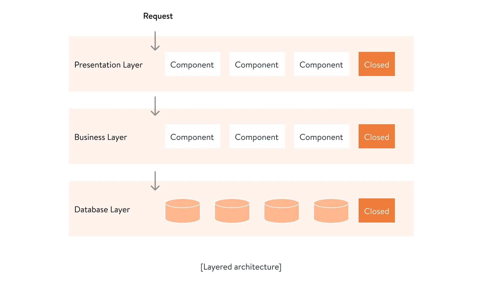 This type of architecture also allows for adding open layers in between closed ones to avoid the architecture sinkhole anti-pattern. This anti-pattern may happen if, for instance, a business layer doesn’t perform any significant function but simply passes requests to the layer below. If this is the case, a software architect can make that business layer open. An open layer can be skipped if not necessary for certain requests. However, open layers impact the overall isolation of layers and can lead to the coupling of certain layers into one codebase.